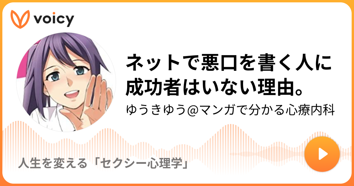 ネットで悪口を書く人に成功者はいない理由 ゆうきゆう マンガで分かる心療内科 人生を変える セクシー心理学 Voicy 音声プラットフォーム